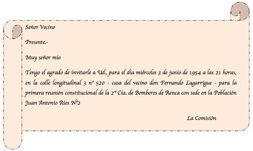 El 31 de mayo de 1954 se reparte una invitación a los vecinos, con la siguiente leyenda: